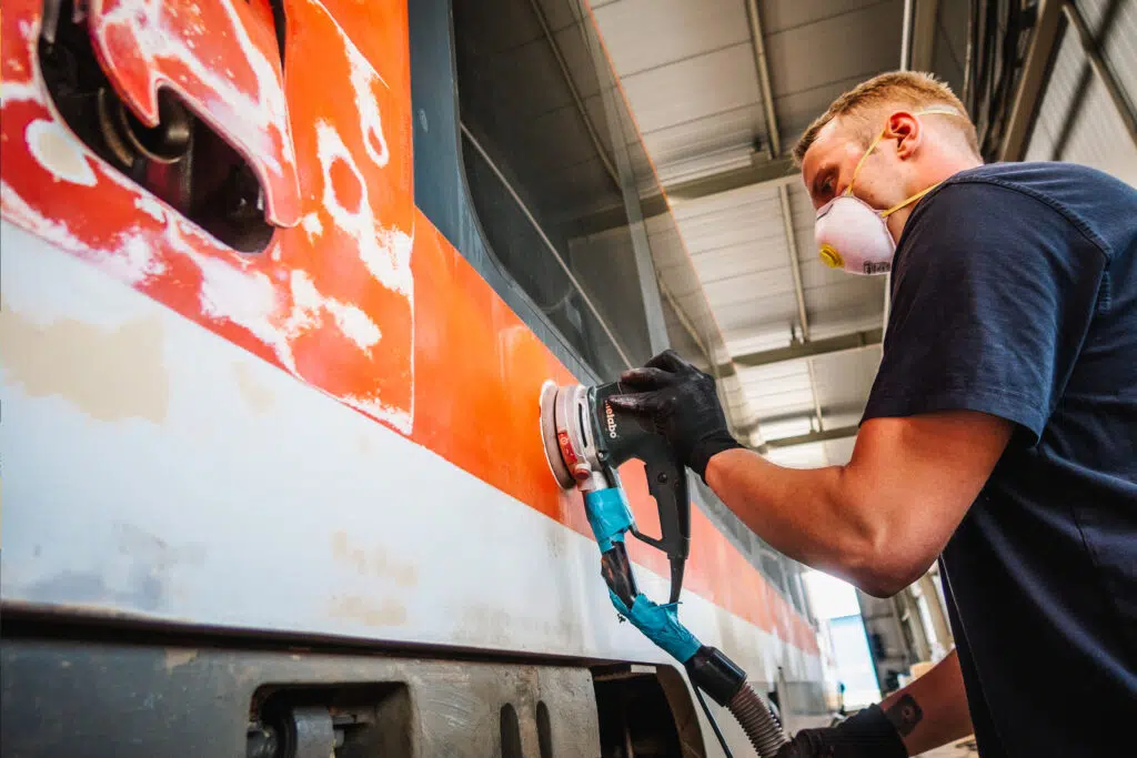 Gesagt, getan: Wir haben gespachtelt, geschliffen, entschriftet und die Züge komplett von außen gereinigt. Danach wurden sie in ein neues Gewand gehüllt und von uns beschriftet. Seither sind sie als Usedom Bahn wieder im täglichen Einsatz.